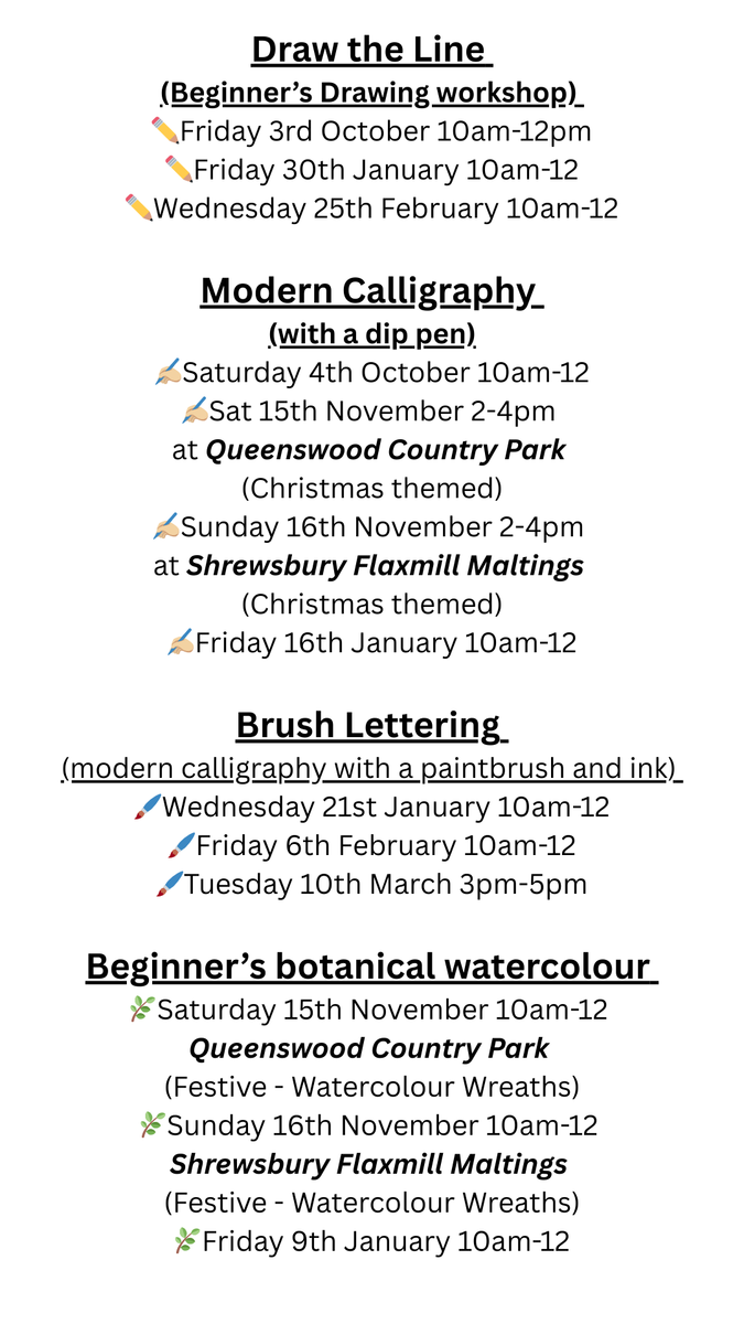 Here is a list of late Autumn workshops coming up - to book onto one of these please visit the workshop page - or click on the image below of the workshop you want to attend