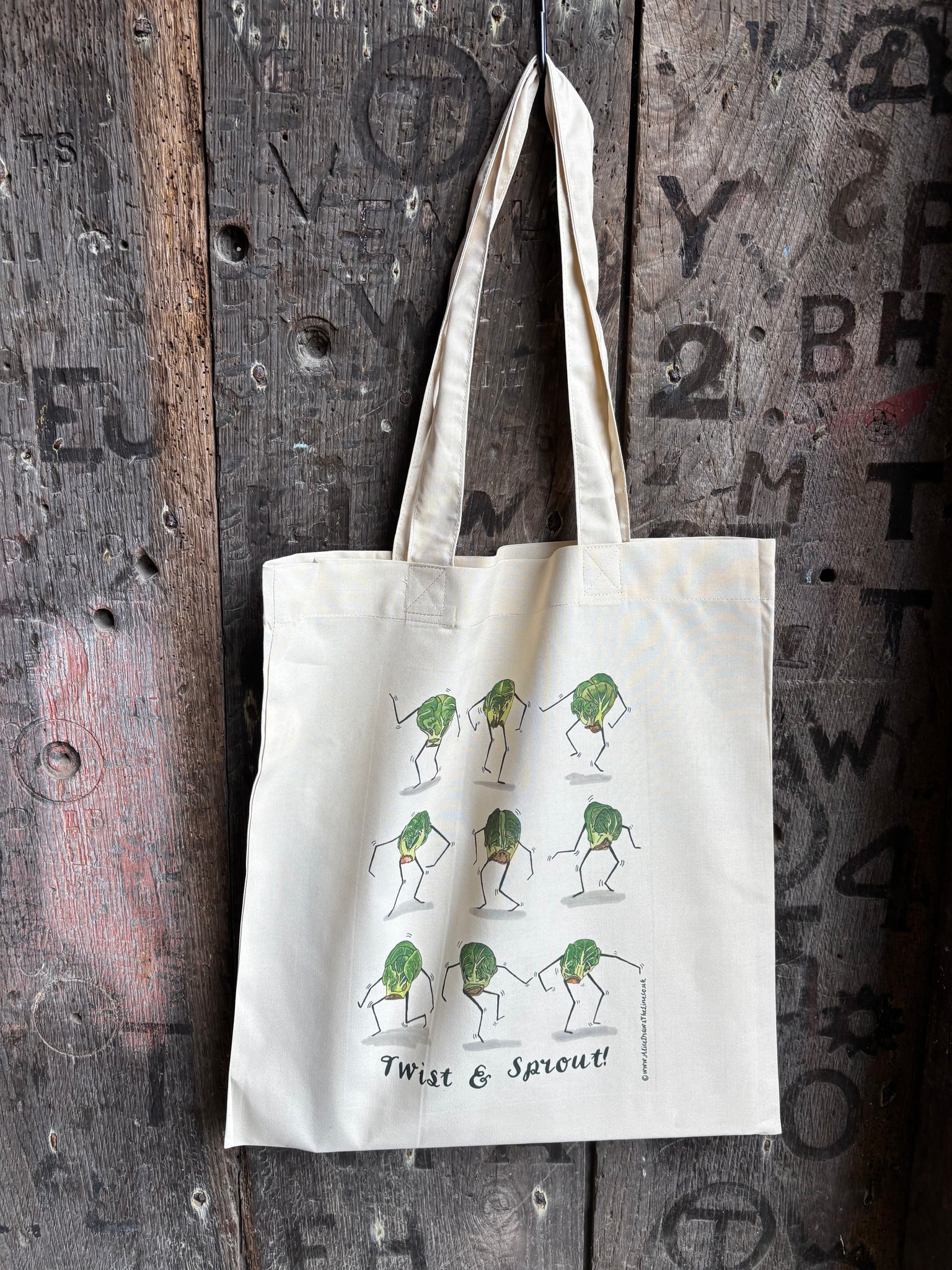 Dimensions 38cm x 42cm, with a 60cm handle, this bag is 100% recycled polyester, with a cotton feel. The design is printed on one side only.